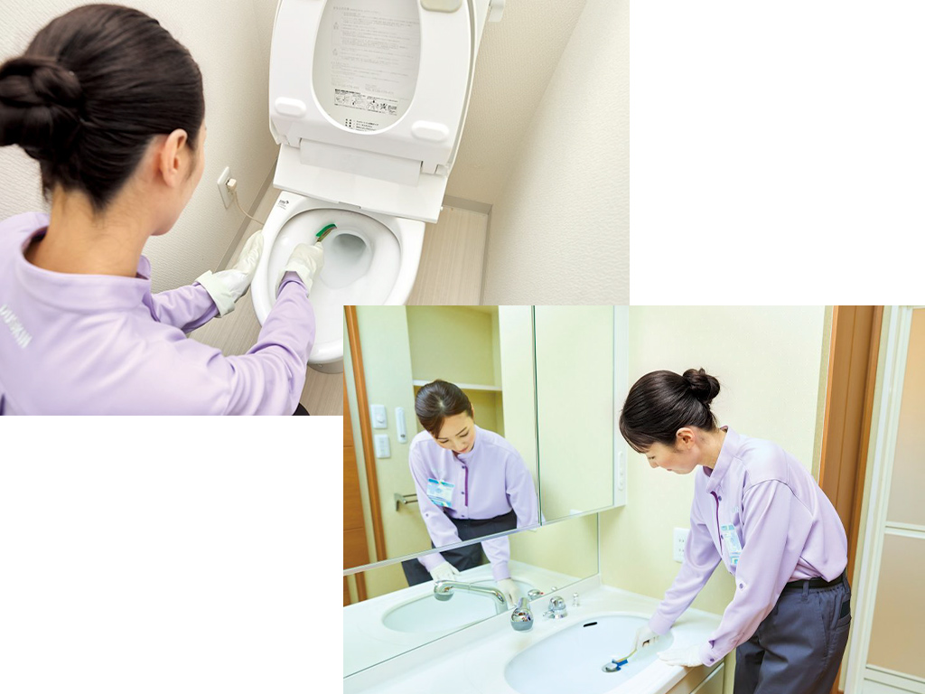 家族が毎日使うところだから、汚れがたまりがち。ふだんは気づかないところや手の届きにくいところ、細かなところまで、ていねいにクリーニングし、除菌仕上げ。