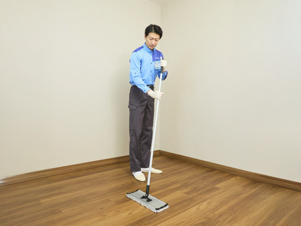 フロアクリーニングは汚れの除去、ワックス処理などを行い、美しい床をキープ。化学タイル、クッションフロアなど、どんな床材もおまかせください。