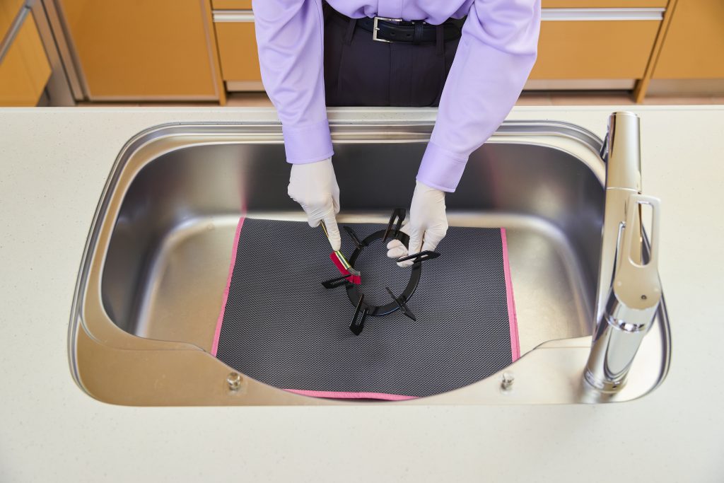 パーツを分解し、細かな部分までしっかり洗浄。コンロのひねり部分など、見落としがちな部分もクリーニング。